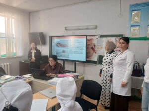 On September 19, 2025, the staff of the Department of “Pediatric Diseases in Family Medicine” of Tashkent State Medical University, Associate Professors K.Z. Yakhyaeva and G.X. Iskanova, in cooperation with the teachers of the Department of “Nursing in Pediatrics” of the No. 1 Republican Abu Ali ibn Sino Public Health Technical School — G. Sayidova and M. Teshayeva — conducted a master seminar on the topic “Transient Conditions in Newborns” with third-year students majoring in “Pediatrics.”